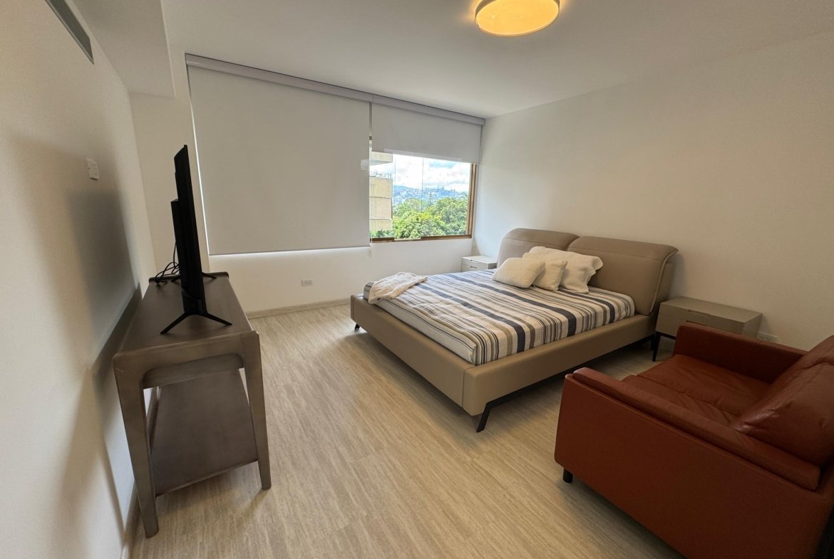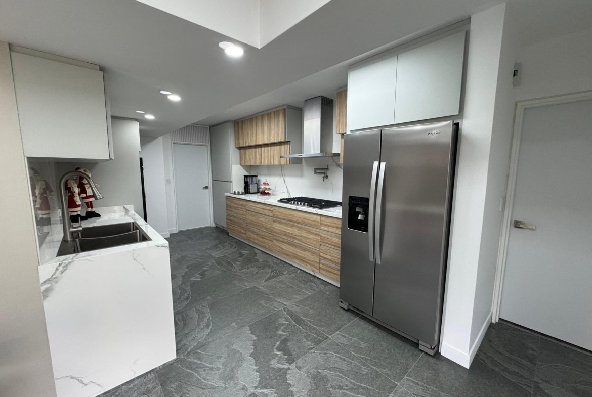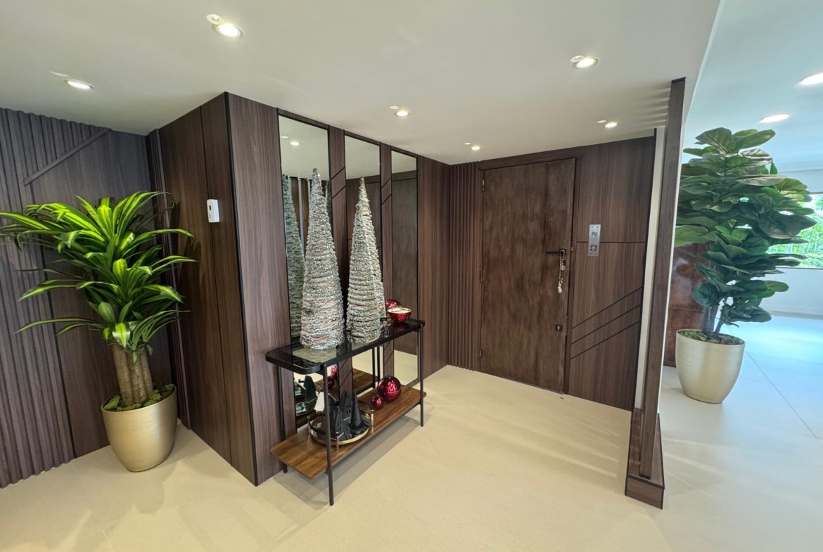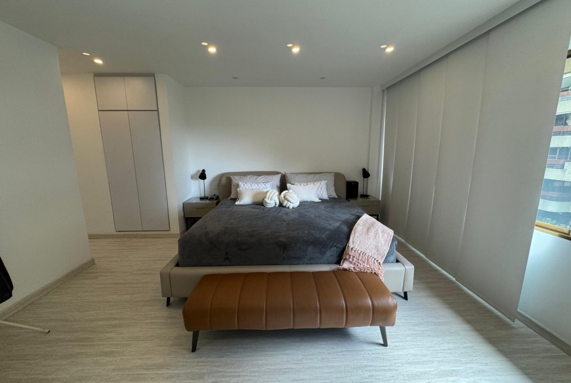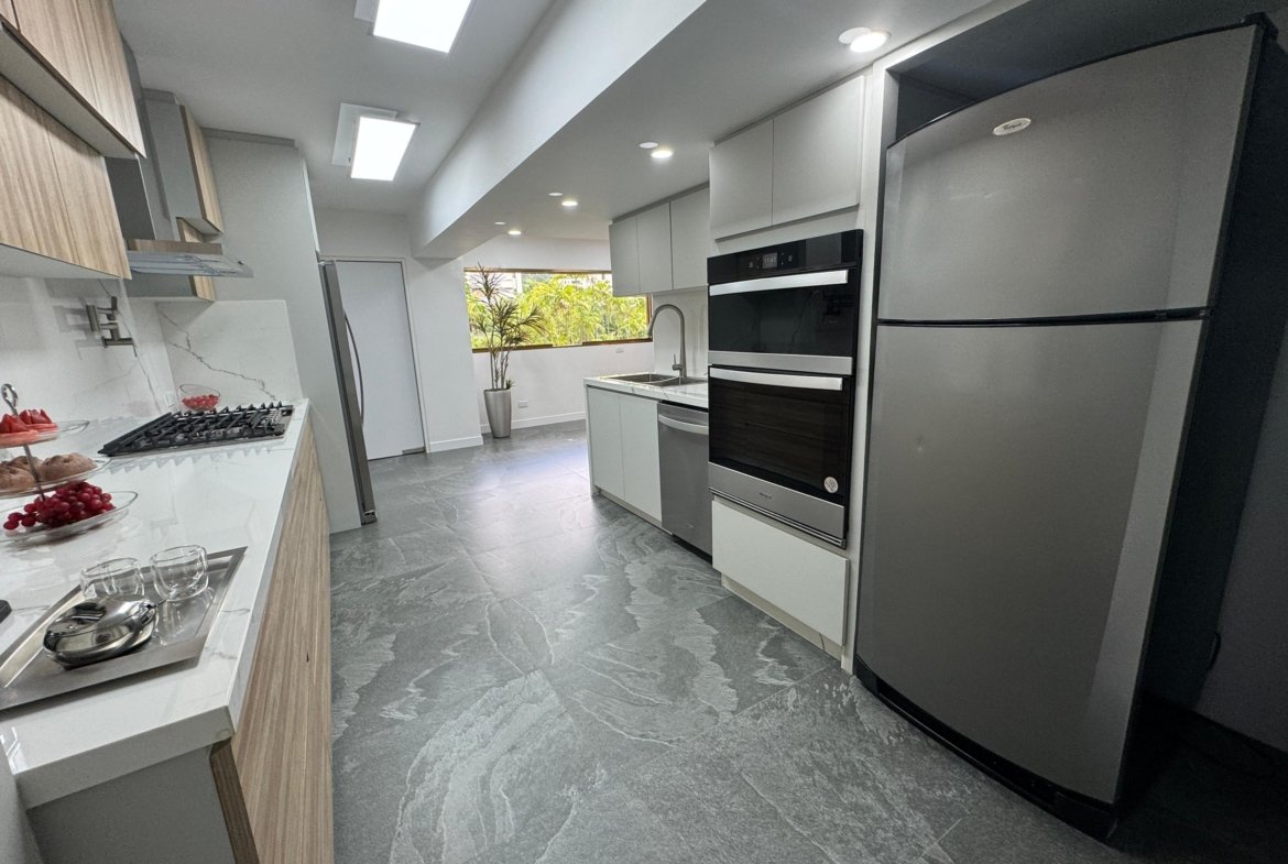 La distribución es altamente funcional, ofreciendo cuatro habitaciones y cuatro baños , complementados por una biblioteca o estudio privado y habitación de servicio. Las áreas sociales se extienden hacia un balcón y terraza que aportan luminosidad. La vivienda incluye aire acondicionado , armarios empotrados, despensa y zona de lavandería. El edificio dispone de vigilancia , ascensor , jardín y dos puestos de estacionamiento, garantizando seguridad y comodidad total.