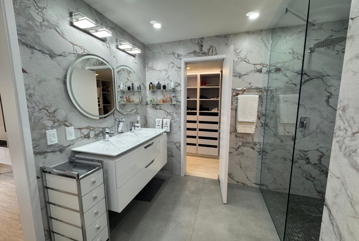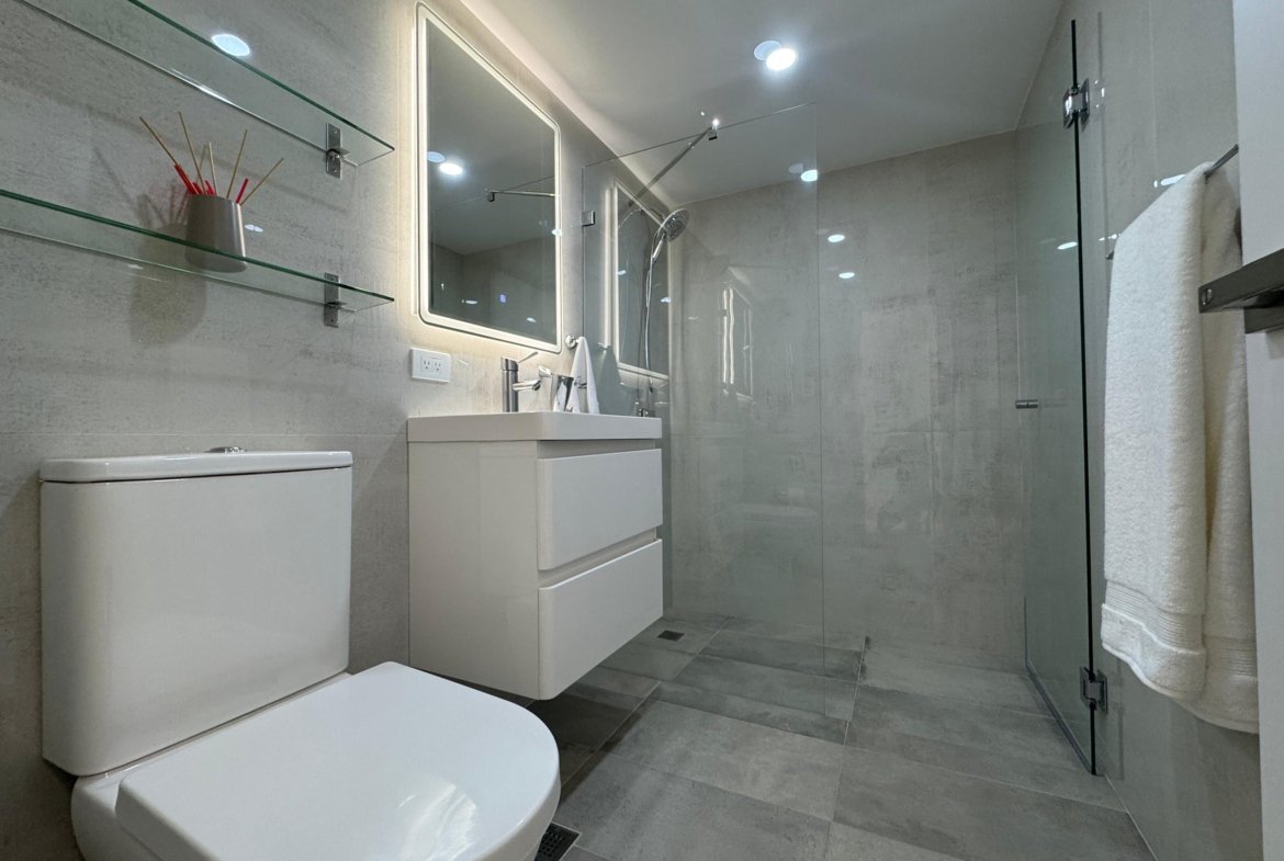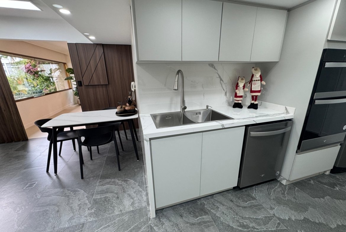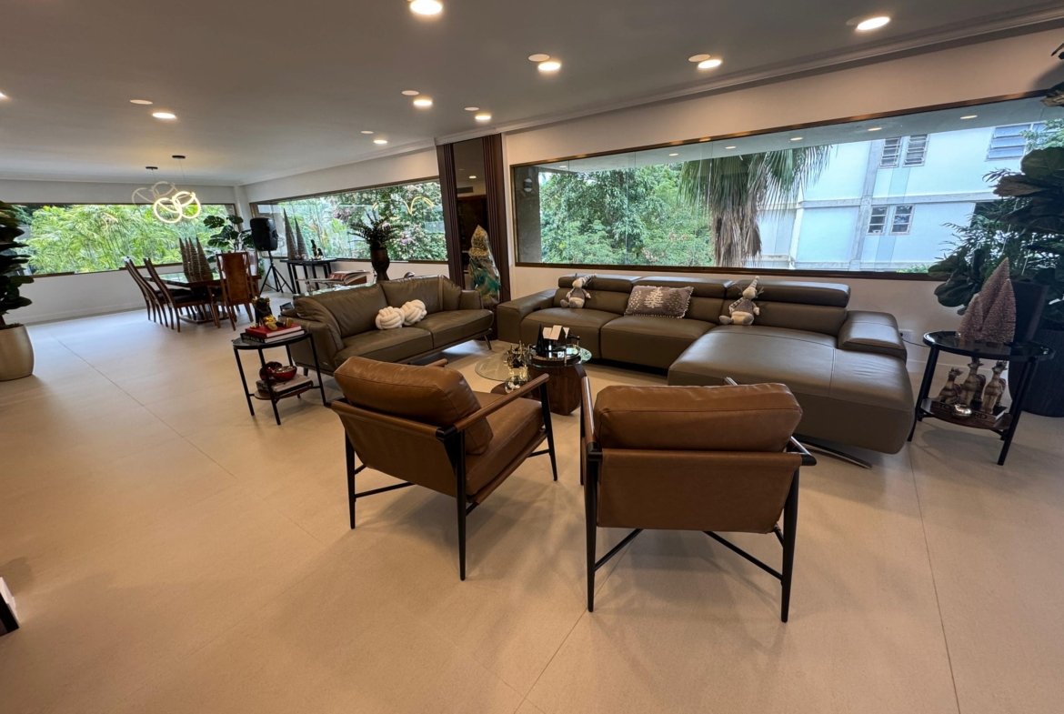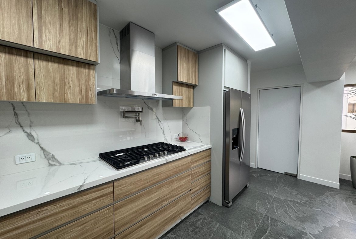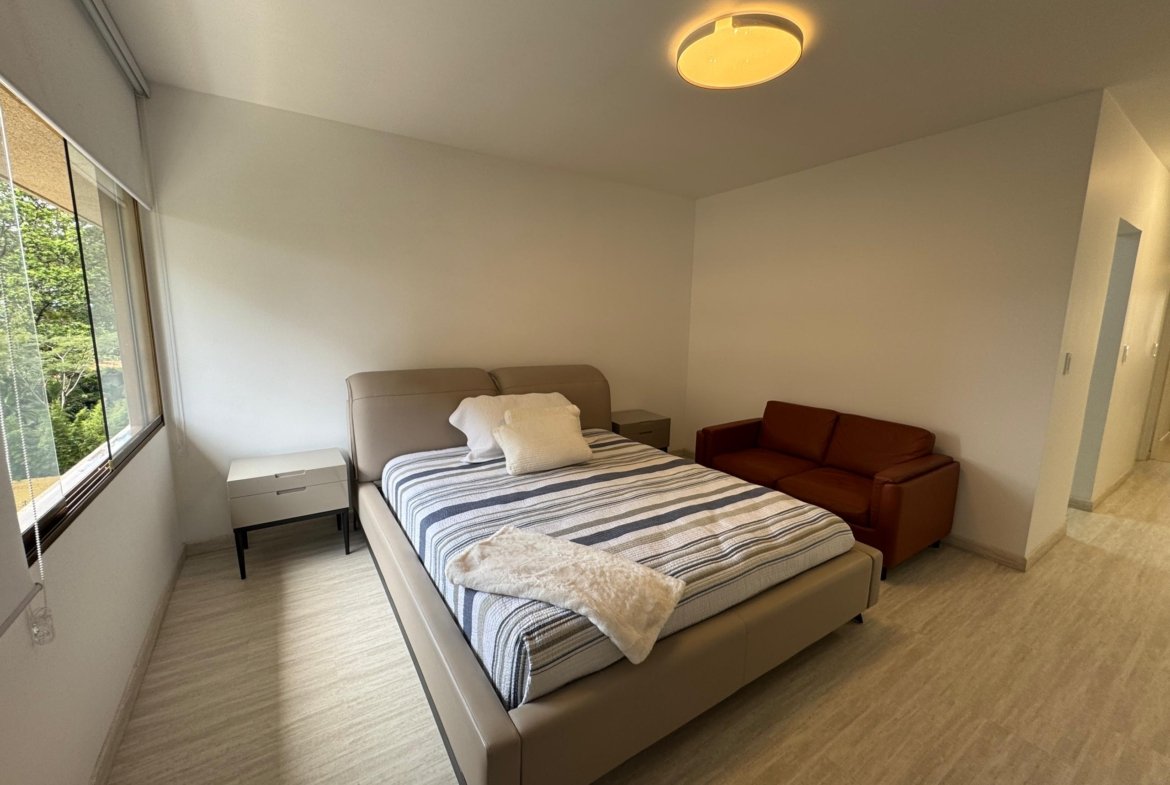 La distribución es altamente funcional, ofreciendo cuatro habitaciones y cuatro baños , complementados por una biblioteca o estudio privado y habitación de servicio. Las áreas sociales se extienden hacia un balcón y terraza que aportan luminosidad. La vivienda incluye aire acondicionado , armarios empotrados, despensa y zona de lavandería. El edificio dispone de vigilancia , ascensor , jardín y dos puestos de estacionamiento, garantizando seguridad y comodidad total.